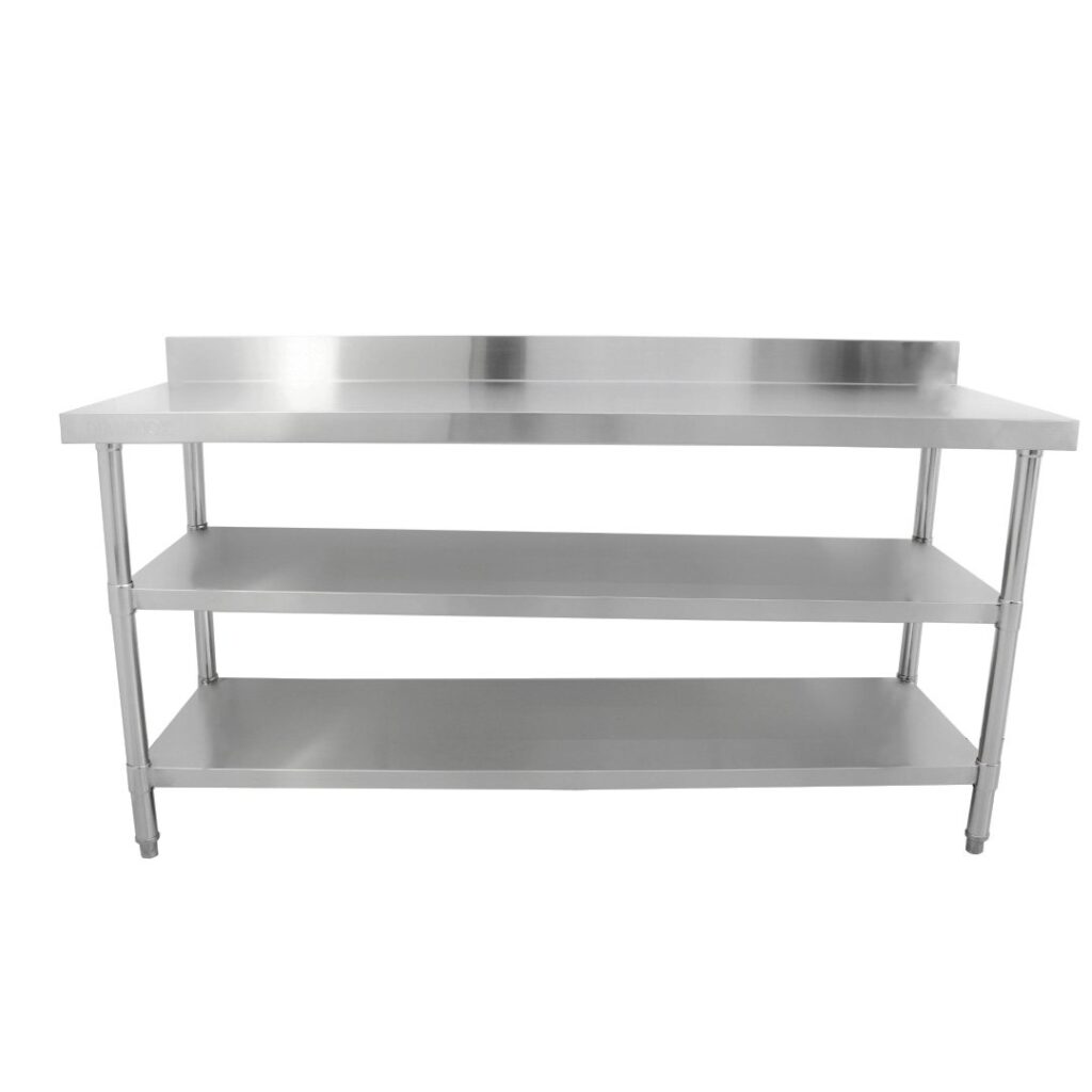 Brand New FP Stainless Steel 180cm Prep Table With Upstand and Two Undershelves