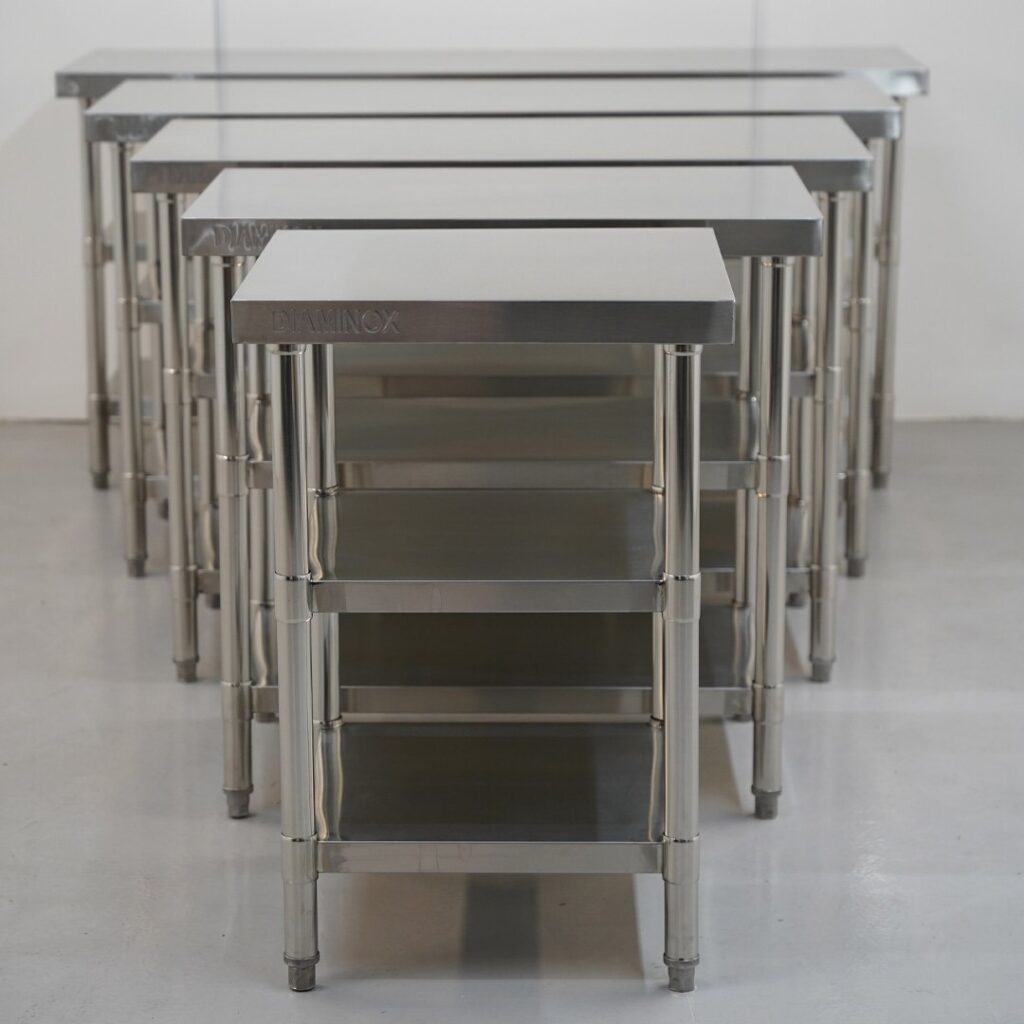 Brand New flat Stainless Steel 90cm Prep Table With 3 Under Shelves