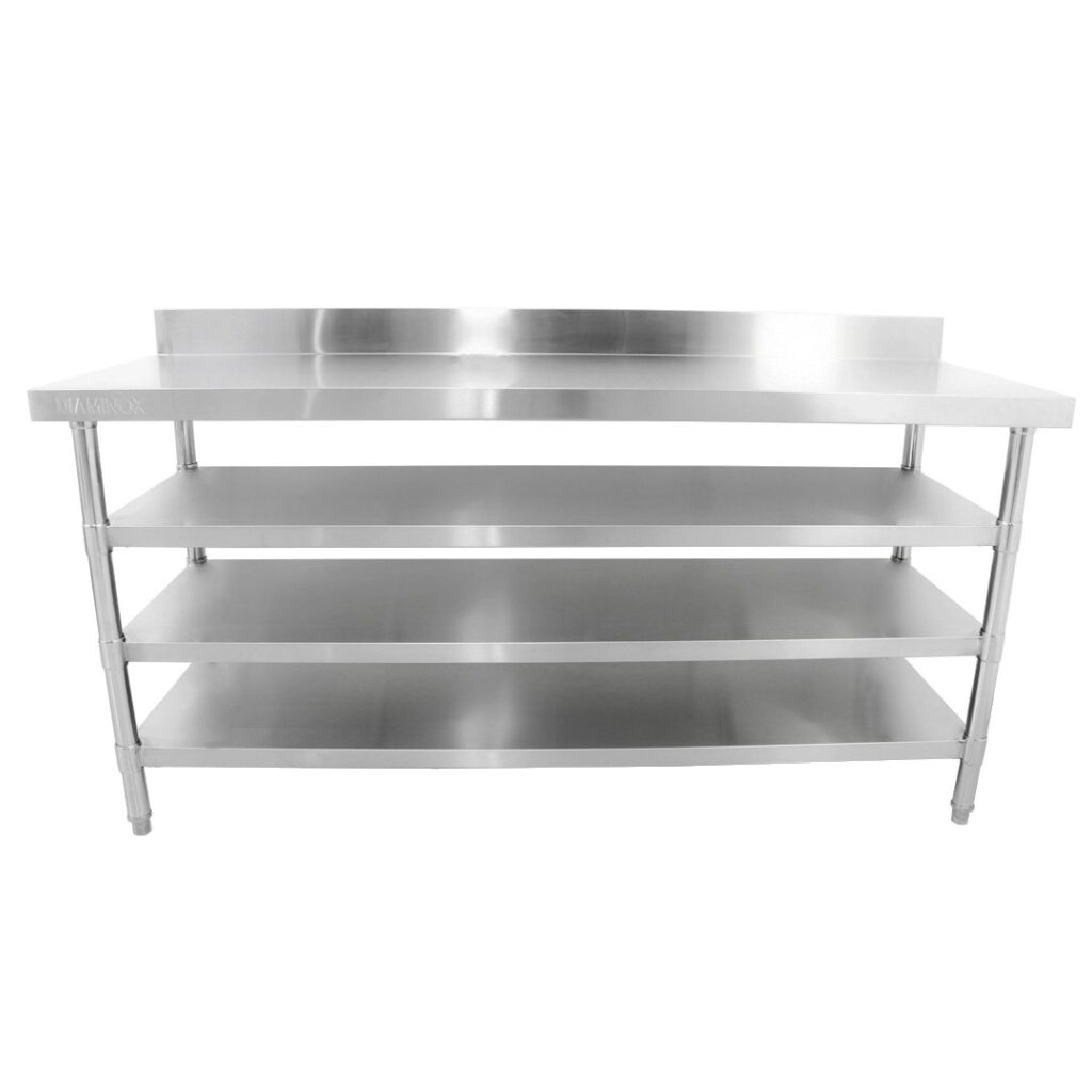 Brand New Stainless Steel 180cm Prep Table With Upstand and 3 Undershelves