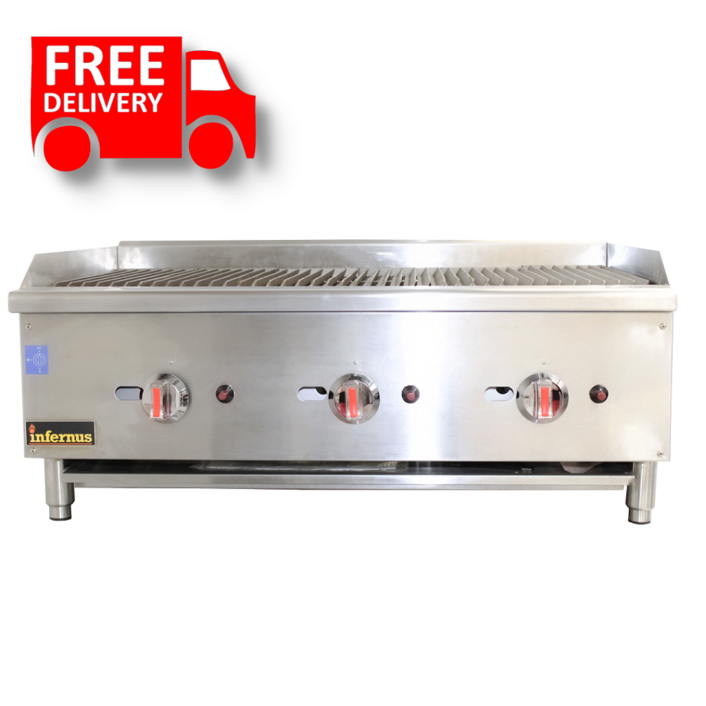 Canmac Professional W900 Chrome Top 20 mm Thick Plate with Thermostatic Gas Valve Griddle+Stand