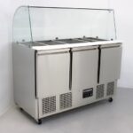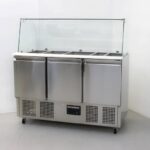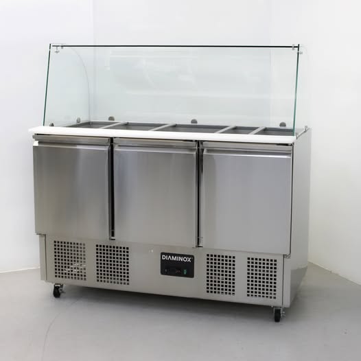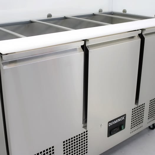 The Diaminox Three door saladette prep Counter brings together a chilled gastro topping section with a triple hinged door refrigerated cabinet resulting in an organised food preparation area with everything you need during a busy service close to hand.