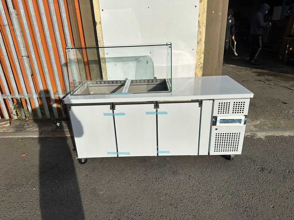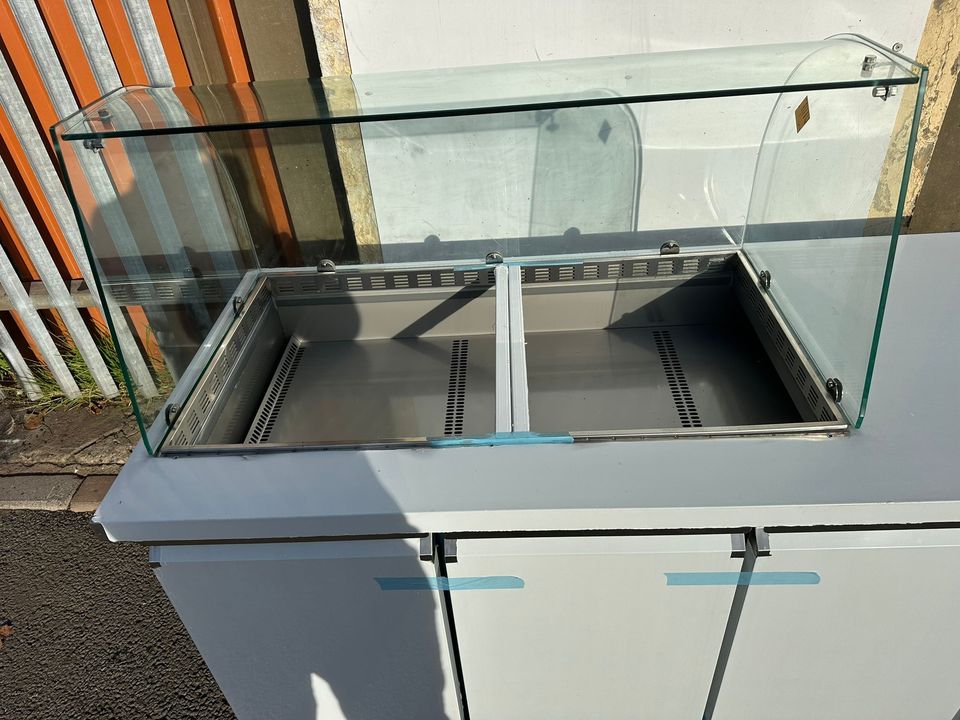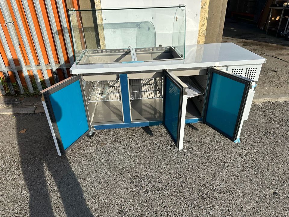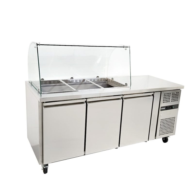 Brand New Diaminox 3 Door Prep Fridge Saladette With Glass Canopy SSG180R