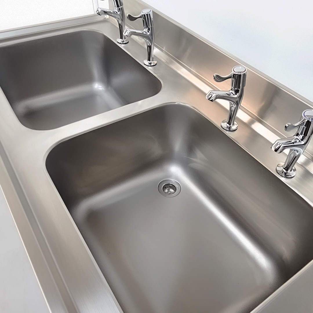 The Diaminox sink comes in a easy to assemble, flat pack design. Its stainless steel adjustable feet provide stability to the sink, with lever pillar taps included.