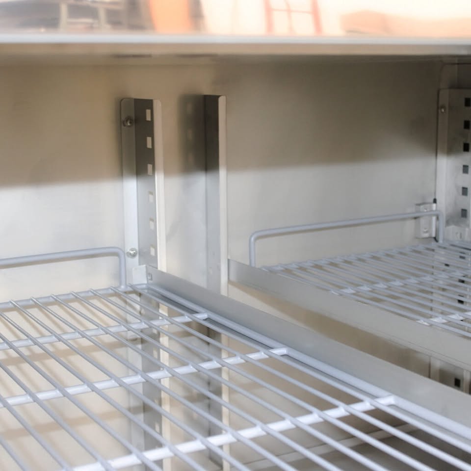 Behind each door is a single shelf, chilled by powerful forced air cooling. This gives you a generous amount of reliable storage, even when the doors are being opened on a regular basis. Digital controls and handy auto-defrost make the counter easy to use and clean, whilst the strong stainless steel exterior more than meets the needs of any busy pro kitchen.