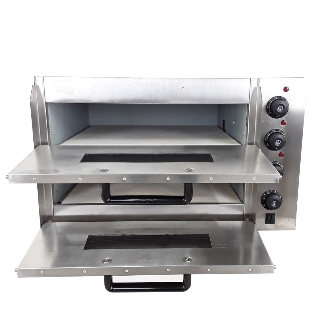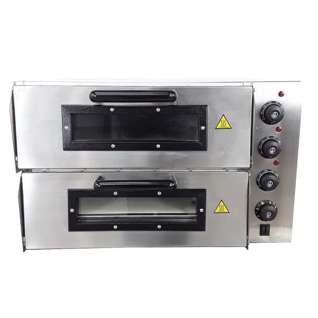 The oven can hold 4 x 10″ inch pizzas on each deck (without pans). It is easy to operate and provides you with quick heating, good thermal retention and low energy consumption. Perfect when it comes to saving your energy and money!