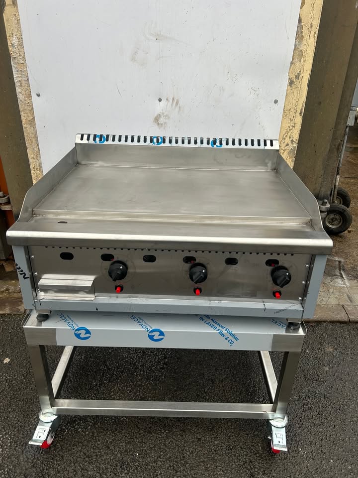 Canmac Professional W900 Chrome Top 20 mm Thick Plate with Thermostatic Gas Valve Griddle+Stand