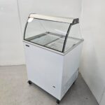 The Tefcold scoop ice cream display IC200SC + Canopy is a stylish and practical solution for presenting and serving ice cream and sorbets. Designed with both functionality and visual appearance in mind, this ice cream display is perfect for cafes, dessert parlors, ice cream vans, and many other hospitality and catering settings. Its curved glass canopy and flat sliding lids ensure maximum product visibility while maintaining cleanliness.